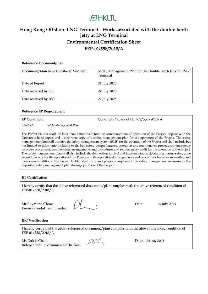 and closure. FSRU Terminal HK shall follow Safety Observation Round