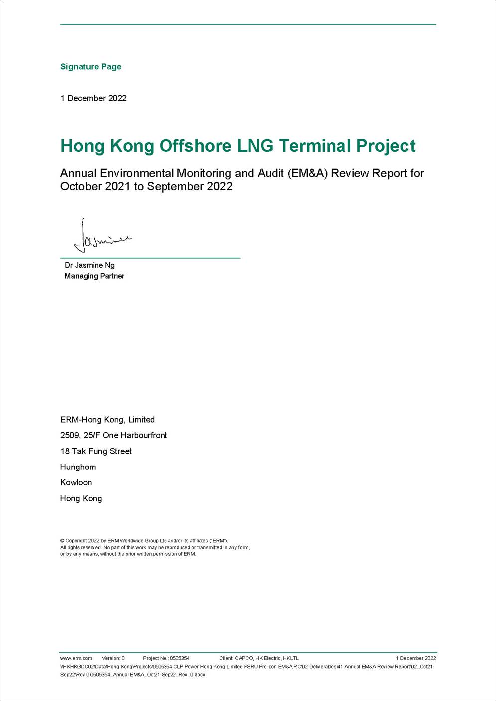 To support the increased use of natural gas in Hong Kong from 2020 onwards, Castle Peak Power Company Limited (CAPCO) and The Hongkong Electric Co., Ltd. (HK Electric) have identified that the development of an offshore liquefied natural gas (LNG) receiving terminal in Hong Kong using Floating Storage and Regasification Unit (FSRU) technology (‘the Project’) presents a viable additional gas supply option that will provide energy security through access to competitive gas supplies from world markets.  The Project will involve the construction and operation of an offshore LNG import facility to be located in the southern waters of Hong Kong, a double berth jetty, and subsea pipelines that connect to the gas receiving stations (GRS) at the Black Point Power Station (BPPS) and the Lamma Power Station (LPS).  To demarcate the works between different parties, the following Further Environmental Permits (FEPs) were issued for the Project: