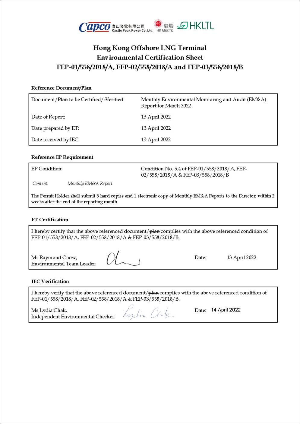 The Environmental Impact Assessment (EIA) Report for the Project was submitted to the Environmental Protection Department (EPD) of the HKSAR Government in May 2018. The EIA Report (EIAO Register No. AEIAR-218/2018) was approved by EPD and the associated Environmental Permit (EP) (EP-558/2018) was issued in October 2018.