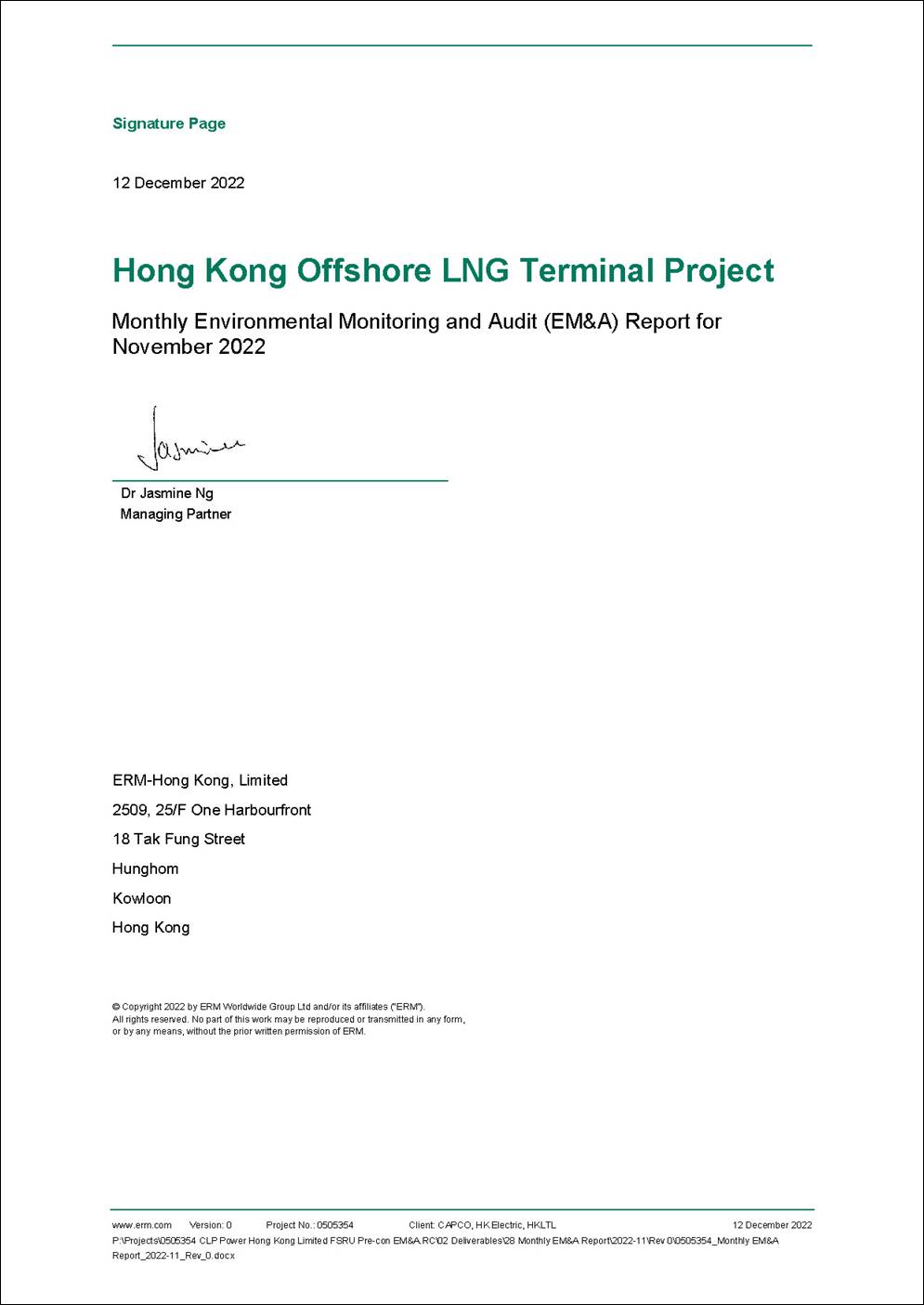 § the double berth jetty at LNG Terminal under the Hong Kong LNG Terminal Limited (HKLTL), joint venture between CAPCO and HK Electric (FEP-01/558/2018/A) – construction commenced on 27 November 2020;