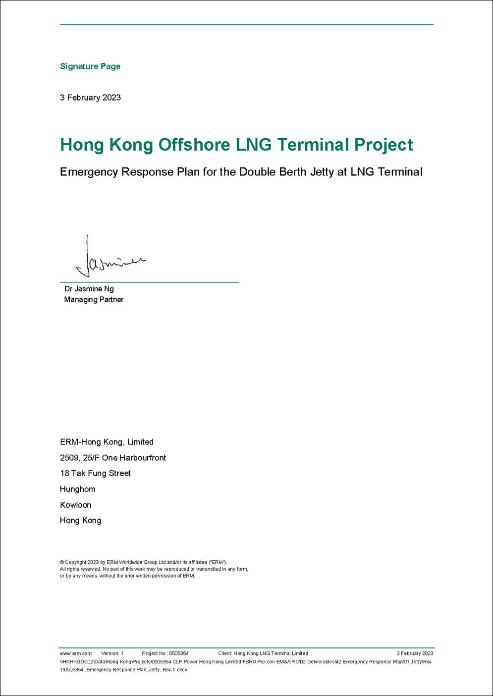 Emergency training for the operation and maintenance staff for the Jetty and HKLTL will be completed before the commercial operation of the Jetty.